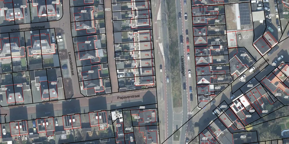 Het perceel waarop Laaressingel 148 staat heeft een oppervlakte van 159 m². Dit is een middelgroot perceel. De perceeloppervlakte wordt geregistreerd door het Kadaster. Gedetailleerde informatie over de maten van dit perceel kunt u vinden in het rapport Kadastrale kaart met maatvoering van Laaressingel 148.