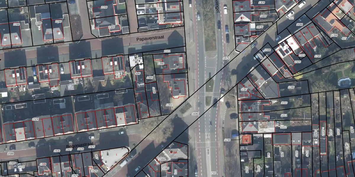 Gebruik de zoekbalk of klik op een perceel voor informatie over de adressen binnen dit perceel.