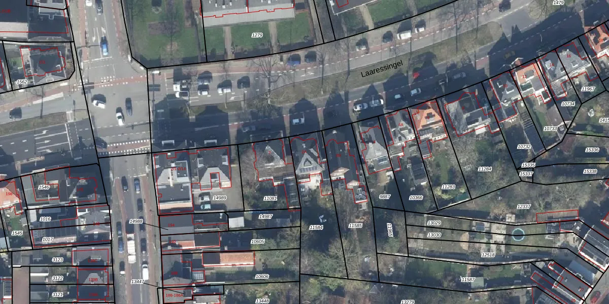 Het perceel waarop Laaressingel 2-A staat heeft een oppervlakte van 576 m². Dit is een groot perceel. De perceeloppervlakte wordt geregistreerd door het Kadaster. Gedetailleerde informatie over de maten van dit perceel kunt u vinden in het rapport Kadastrale kaart met maatvoering van Laaressingel 2-A.
