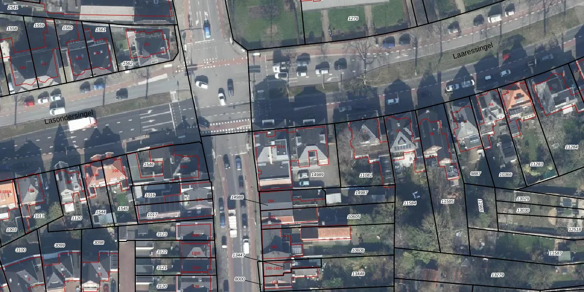 Het perceel waarop Laaressingel 2-3 staat heeft een oppervlakte van 586 m². Dit is een groot perceel. De perceeloppervlakte wordt geregistreerd door het Kadaster. Gedetailleerde informatie over de maten van dit perceel kunt u vinden in het rapport Kadastrale kaart met maatvoering van Laaressingel 2-3.