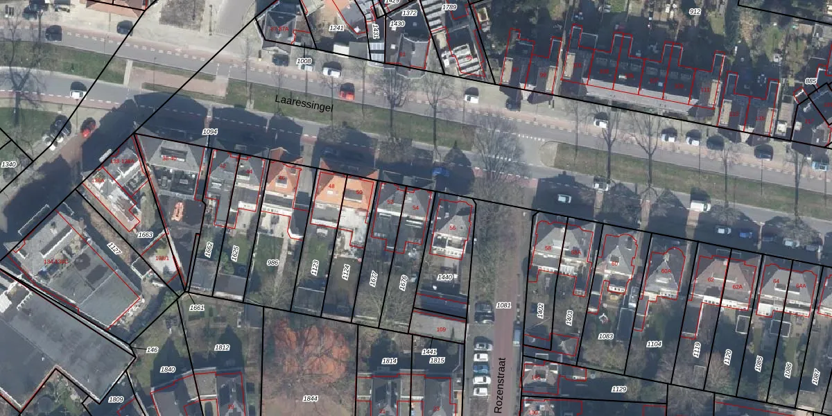 Het perceel waarop Laaressingel 54 staat heeft een oppervlakte van 249 m². Dit is een middelgroot perceel. De perceeloppervlakte wordt geregistreerd door het Kadaster. Gedetailleerde informatie over de maten van dit perceel kunt u vinden in het rapport Kadastrale kaart met maatvoering van Laaressingel 54.