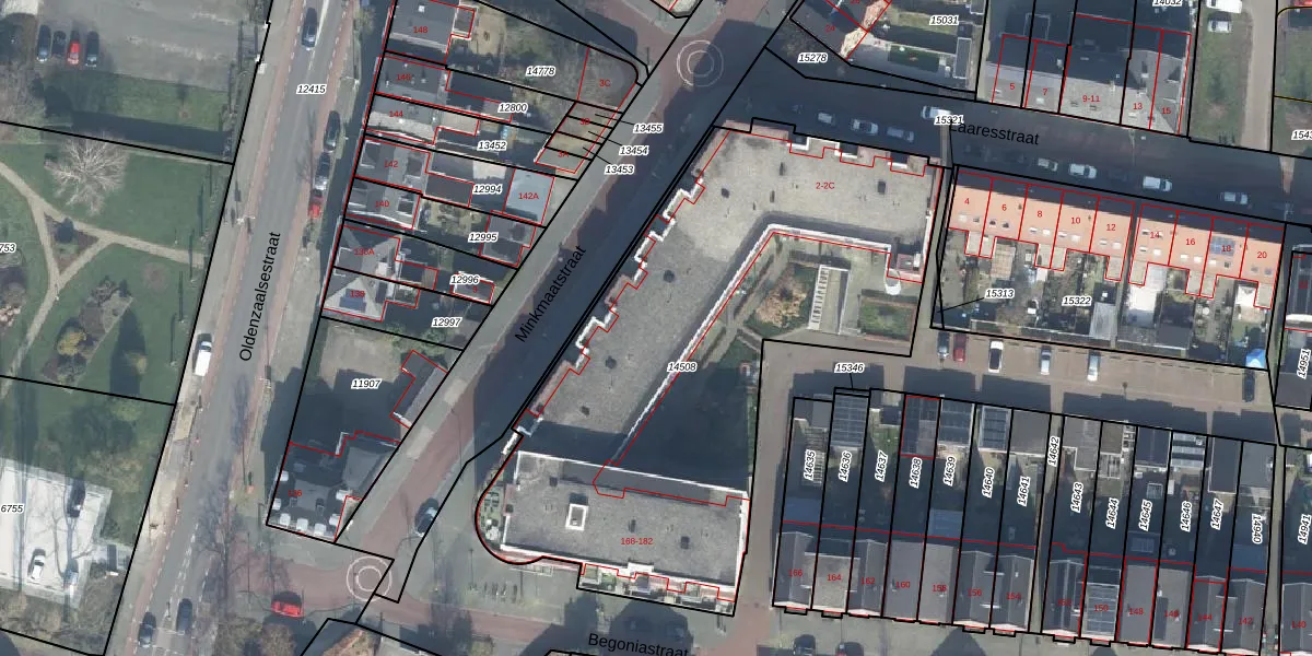 Laaresstraat 2 is gelegen op kadastraal perceel ESD00D14508. Deze kadastrale aanduiding is uniek en wordt gebruikt door het Kadaster om eigendomsrechten en andere zakelijke rechten vast te leggen. Het perceel maakt onderdeel uit van de kadastrale gemeente Enschede.
