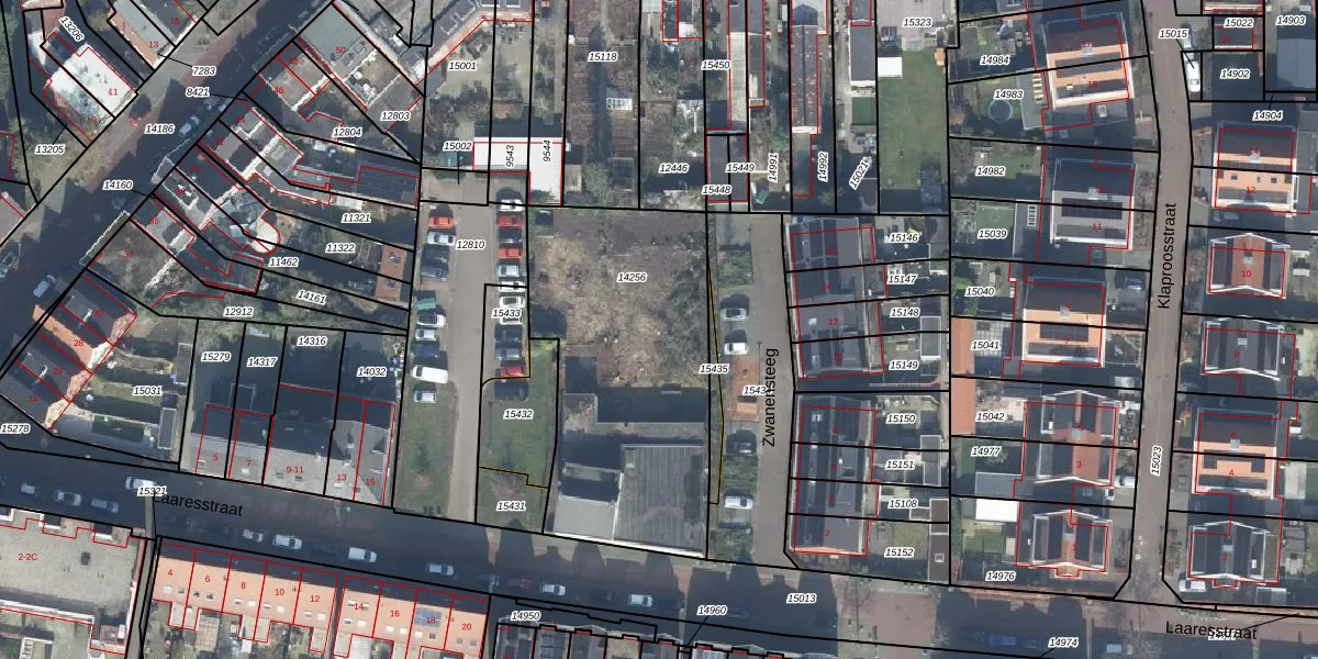 Het perceel waarop Laaresstraat 21-22 staat heeft een oppervlakte van 1276 m². Dit is een zeer groot perceel. De perceeloppervlakte wordt geregistreerd door het Kadaster. Gedetailleerde informatie over de maten van dit perceel kunt u vinden in het rapport Kadastrale kaart met maatvoering van Laaresstraat 21-22.