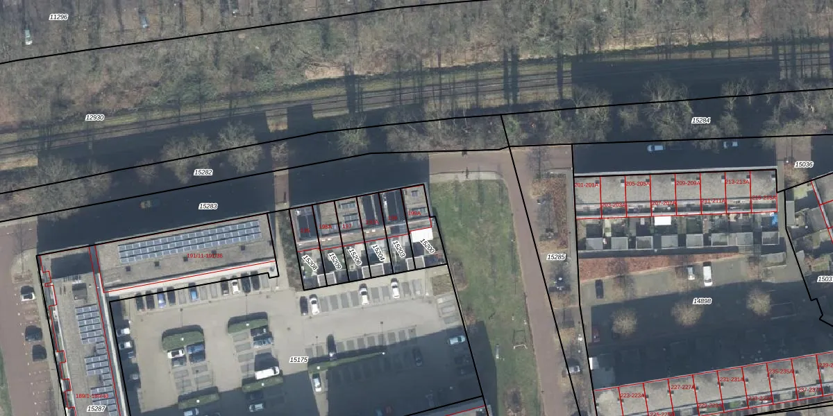 Gebruik de zoekbalk of klik op een perceel voor informatie over de adressen binnen dit perceel.