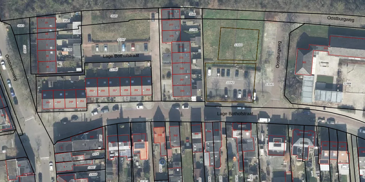 Lage Bothofstraat 265 is gelegen op kadastraal perceel LNK00O11796. Deze kadastrale aanduiding is uniek en wordt gebruikt door het Kadaster om eigendomsrechten en andere zakelijke rechten vast te leggen. Het perceel maakt onderdeel uit van de kadastrale gemeente Lonneker.