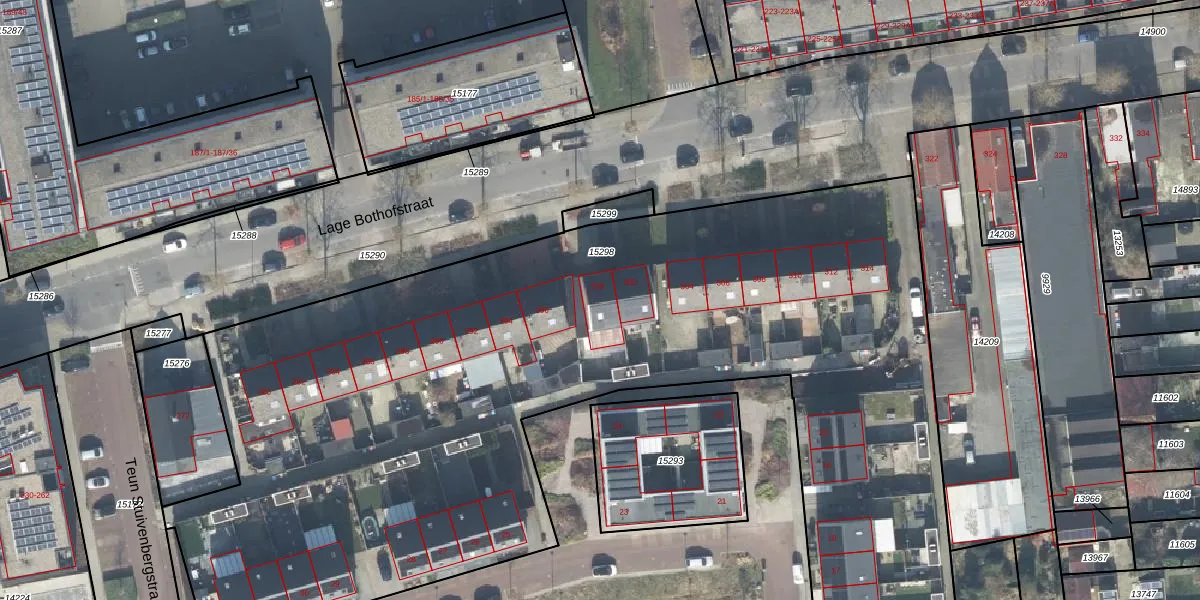 Lage Bothofstraat 298 is gelegen op kadastraal perceel ESD00D15298. Deze kadastrale aanduiding is uniek en wordt gebruikt door het Kadaster om eigendomsrechten en andere zakelijke rechten vast te leggen. Het perceel maakt onderdeel uit van de kadastrale gemeente Enschede.