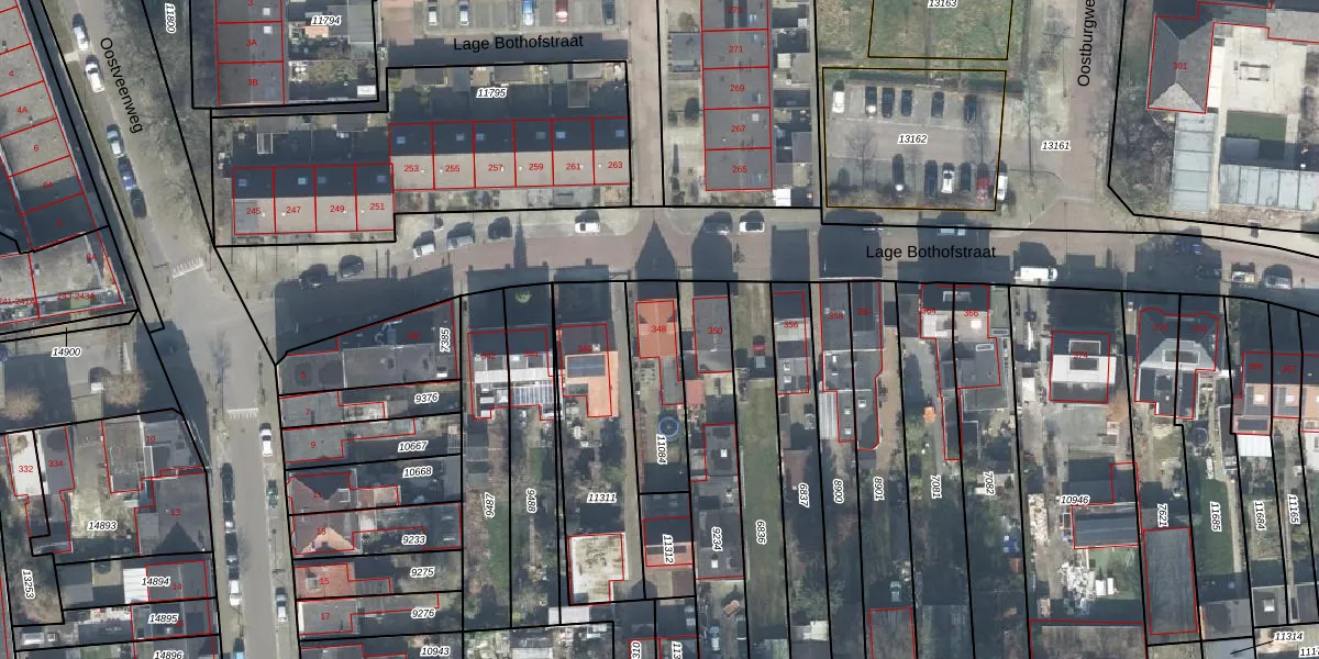 Lage Bothofstraat 348 is gelegen op kadastraal perceel LNK00O11084. Deze kadastrale aanduiding is uniek en wordt gebruikt door het Kadaster om eigendomsrechten en andere zakelijke rechten vast te leggen. Het perceel maakt onderdeel uit van de kadastrale gemeente Lonneker.