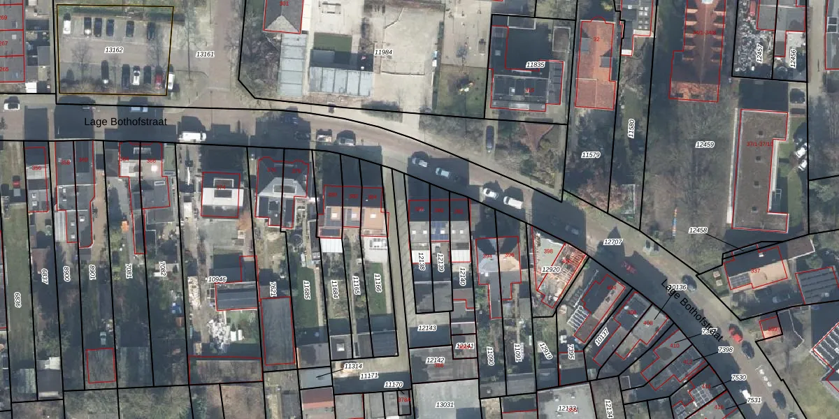 Lage Bothofstraat 388 is gelegen op kadastraal perceel LNK00O12138. Deze kadastrale aanduiding is uniek en wordt gebruikt door het Kadaster om eigendomsrechten en andere zakelijke rechten vast te leggen. Het perceel maakt onderdeel uit van de kadastrale gemeente Lonneker.