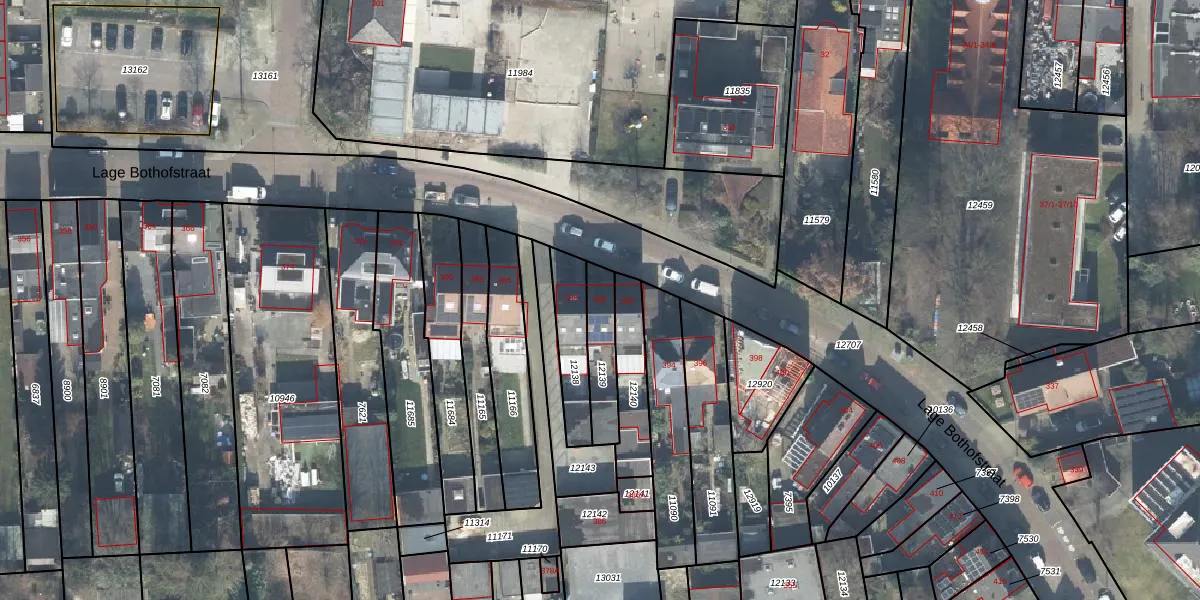 Lage Bothofstraat 390 is gelegen op kadastraal perceel LNK00O12139. Deze kadastrale aanduiding is uniek en wordt gebruikt door het Kadaster om eigendomsrechten en andere zakelijke rechten vast te leggen. Het perceel maakt onderdeel uit van de kadastrale gemeente Lonneker.