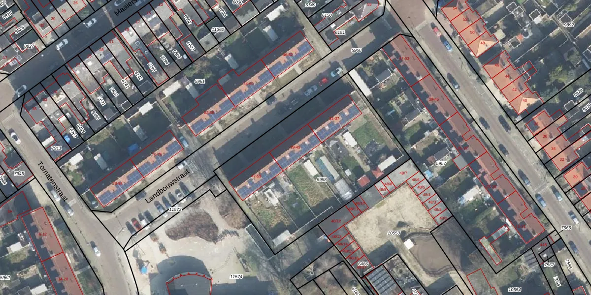 Het perceel waarop Landbouwstraat 39 staat heeft een oppervlakte van 2000 m². Dit is een zeer groot perceel. De perceeloppervlakte wordt geregistreerd door het Kadaster. Gedetailleerde informatie over de maten van dit perceel kunt u vinden in het rapport Kadastrale kaart met maatvoering van Landbouwstraat 39.