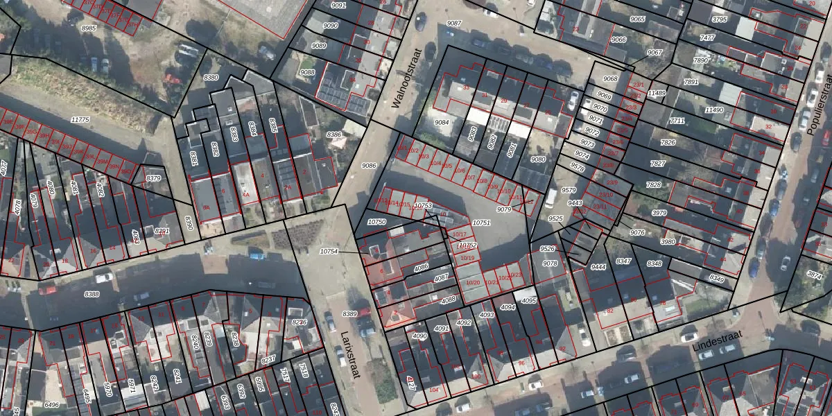 Larixstraat 10-16 is gelegen op kadastraal perceel LNK00N10751. Deze kadastrale aanduiding is uniek en wordt gebruikt door het Kadaster om eigendomsrechten en andere zakelijke rechten vast te leggen. Het perceel maakt onderdeel uit van de kadastrale gemeente Lonneker.
