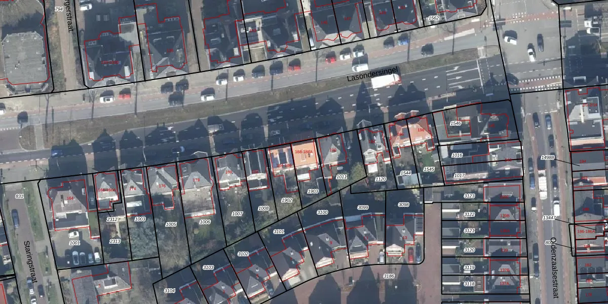 Het perceel waarop Lasondersingel 188-A staat heeft een oppervlakte van 176 m². Dit is een middelgroot perceel. De perceeloppervlakte wordt geregistreerd door het Kadaster. Gedetailleerde informatie over de maten van dit perceel kunt u vinden in het rapport Kadastrale kaart met maatvoering van Lasondersingel 188-A.