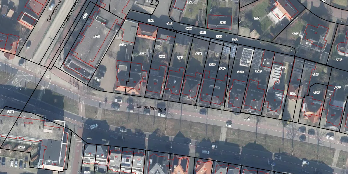Het perceel waarop Lasondersingel 85 staat heeft een oppervlakte van 388 m². Dit is een groot perceel. De perceeloppervlakte wordt geregistreerd door het Kadaster. Gedetailleerde informatie over de maten van dit perceel kunt u vinden in het rapport Kadastrale kaart met maatvoering van Lasondersingel 85.