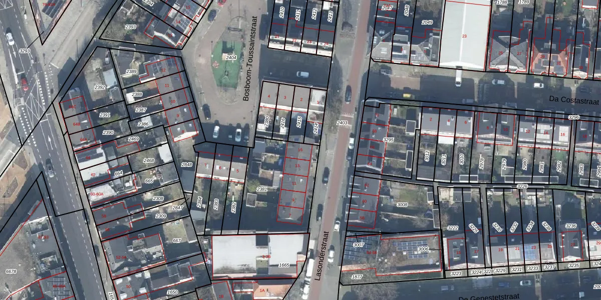 Het perceel waarop Lasonderstraat 15 staat heeft een oppervlakte van 726 m². Dit is een groot perceel. De perceeloppervlakte wordt geregistreerd door het Kadaster. Gedetailleerde informatie over de maten van dit perceel kunt u vinden in het rapport Kadastrale kaart met maatvoering van Lasonderstraat 15.