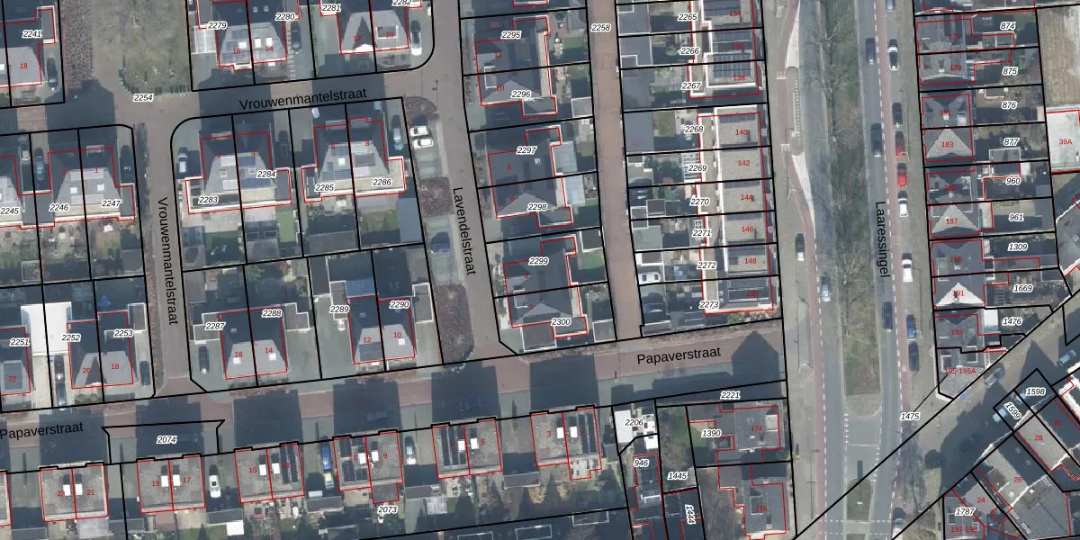Gebruik de zoekbalk of klik op een perceel voor informatie over de adressen binnen dit perceel.