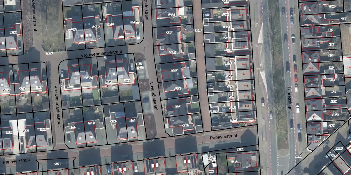Het perceel waarop Lavendelstraat 6 staat heeft een oppervlakte van 227 m². Dit is een middelgroot perceel. De perceeloppervlakte wordt geregistreerd door het Kadaster. Gedetailleerde informatie over de maten van dit perceel kunt u vinden in het rapport Kadastrale kaart met maatvoering van Lavendelstraat 6.