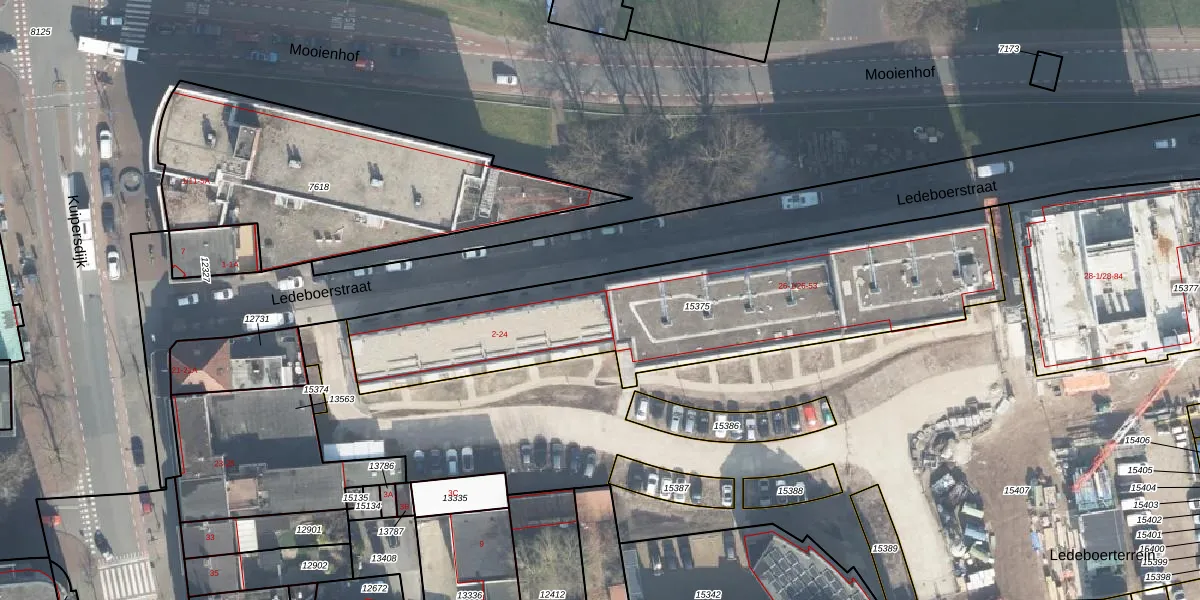 Het perceel waarop Ledeboerstraat 24 staat heeft een oppervlakte van 1706 m². Dit is een zeer groot perceel. De perceeloppervlakte wordt geregistreerd door het Kadaster. Gedetailleerde informatie over de maten van dit perceel kunt u vinden in het rapport Kadastrale kaart met maatvoering van Ledeboerstraat 24.