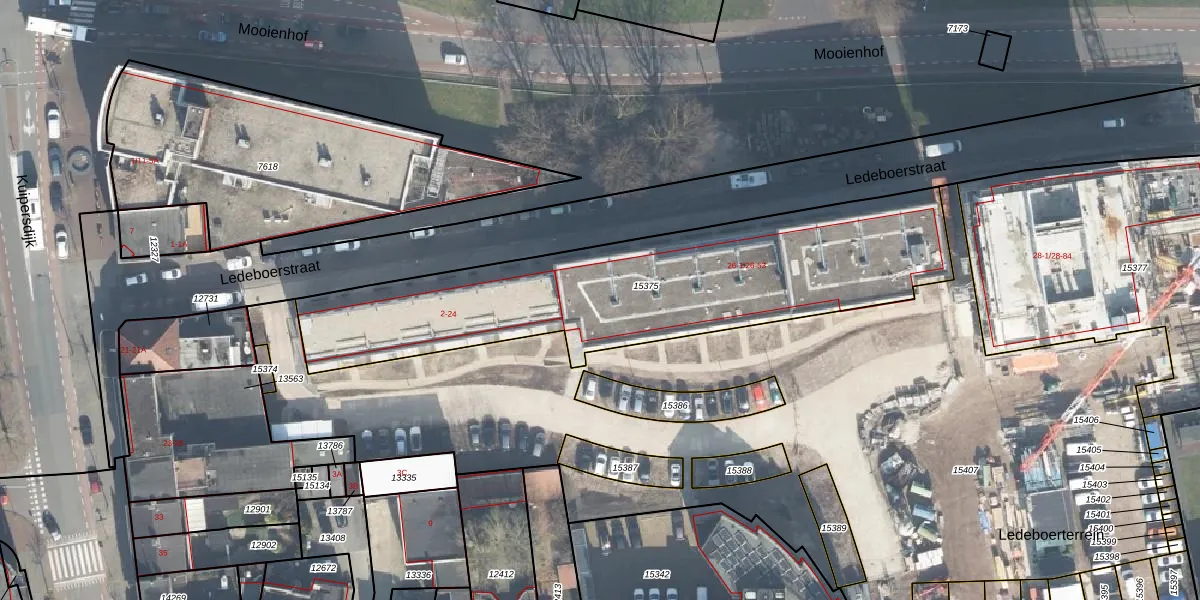 Het perceel waarop Ledeboerstraat 26-21 staat heeft een oppervlakte van 1706 m². Dit is een zeer groot perceel. De perceeloppervlakte wordt geregistreerd door het Kadaster. Gedetailleerde informatie over de maten van dit perceel kunt u vinden in het rapport Kadastrale kaart met maatvoering van Ledeboerstraat 26-21.