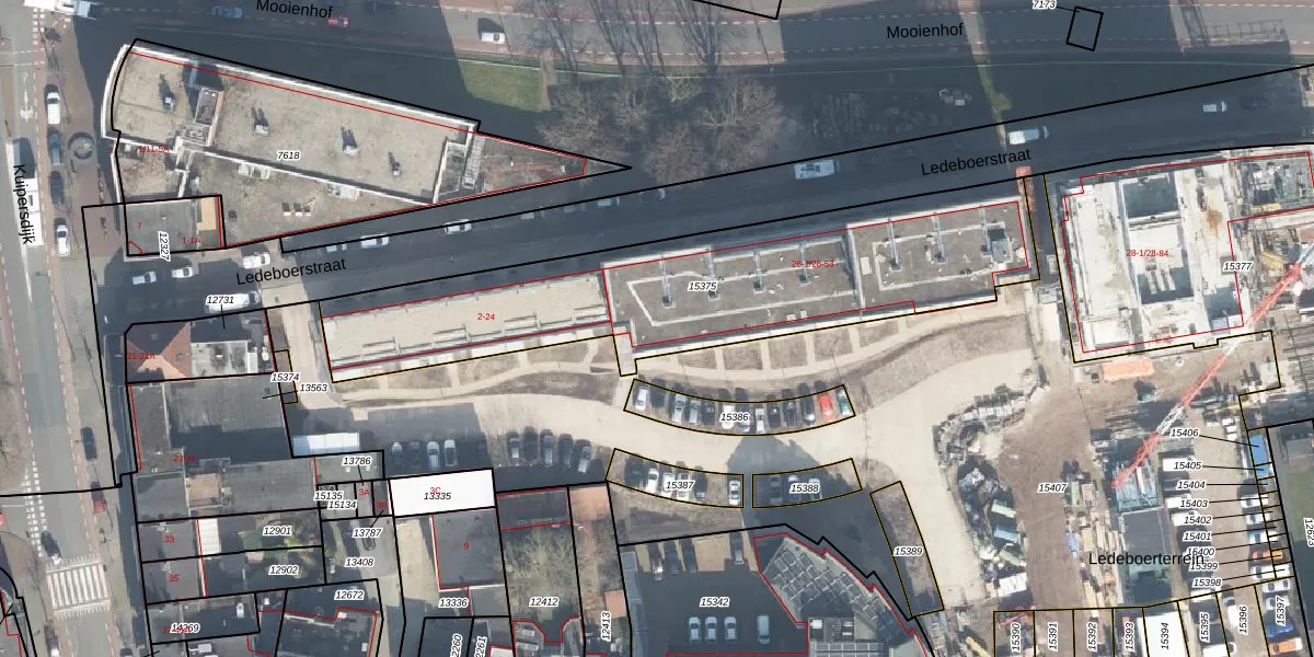 Het perceel waarop Ledeboerstraat 26-41 staat heeft een oppervlakte van 1706 m². Dit is een zeer groot perceel. De perceeloppervlakte wordt geregistreerd door het Kadaster. Gedetailleerde informatie over de maten van dit perceel kunt u vinden in het rapport Kadastrale kaart met maatvoering van Ledeboerstraat 26-41.