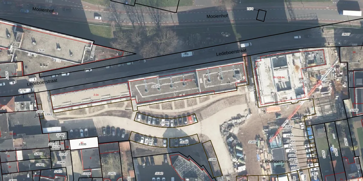 Ledeboerstraat 26-44 is gelegen op kadastraal perceel ESD00D15375. Deze kadastrale aanduiding is uniek en wordt gebruikt door het Kadaster om eigendomsrechten en andere zakelijke rechten vast te leggen. Het perceel maakt onderdeel uit van de kadastrale gemeente Enschede.
