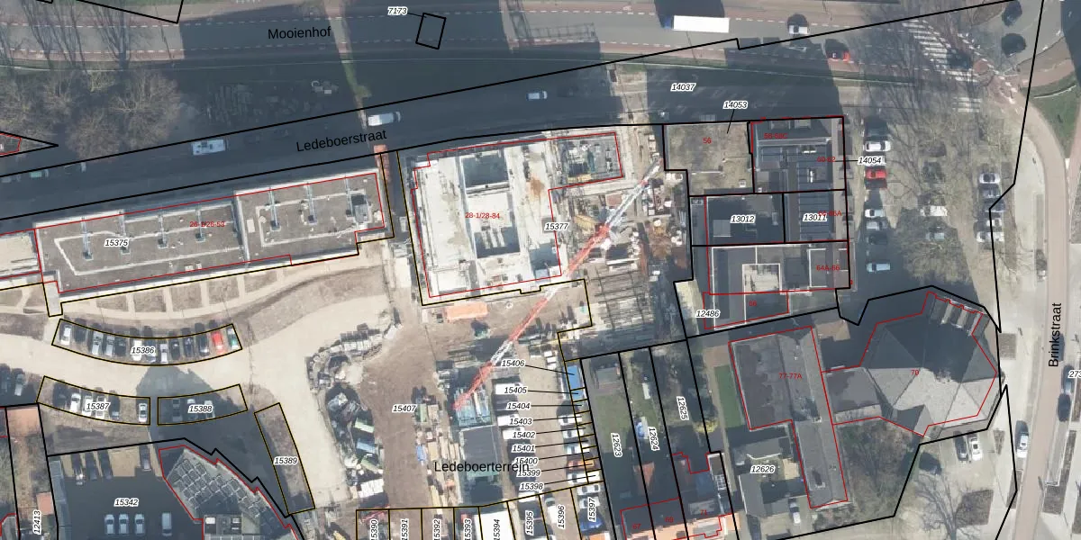 Het perceel waarop Ledeboerstraat 28-15 staat heeft een oppervlakte van 1729 m². Dit is een zeer groot perceel. De perceeloppervlakte wordt geregistreerd door het Kadaster. Gedetailleerde informatie over de maten van dit perceel kunt u vinden in het rapport Kadastrale kaart met maatvoering van Ledeboerstraat 28-15.