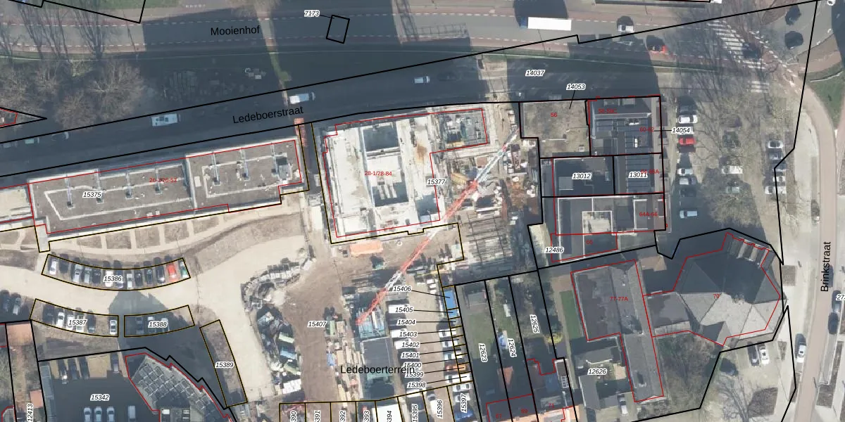 Ledeboerstraat 28-26 is gelegen op kadastraal perceel ESD00D15377. Deze kadastrale aanduiding is uniek en wordt gebruikt door het Kadaster om eigendomsrechten en andere zakelijke rechten vast te leggen. Het perceel maakt onderdeel uit van de kadastrale gemeente Enschede.