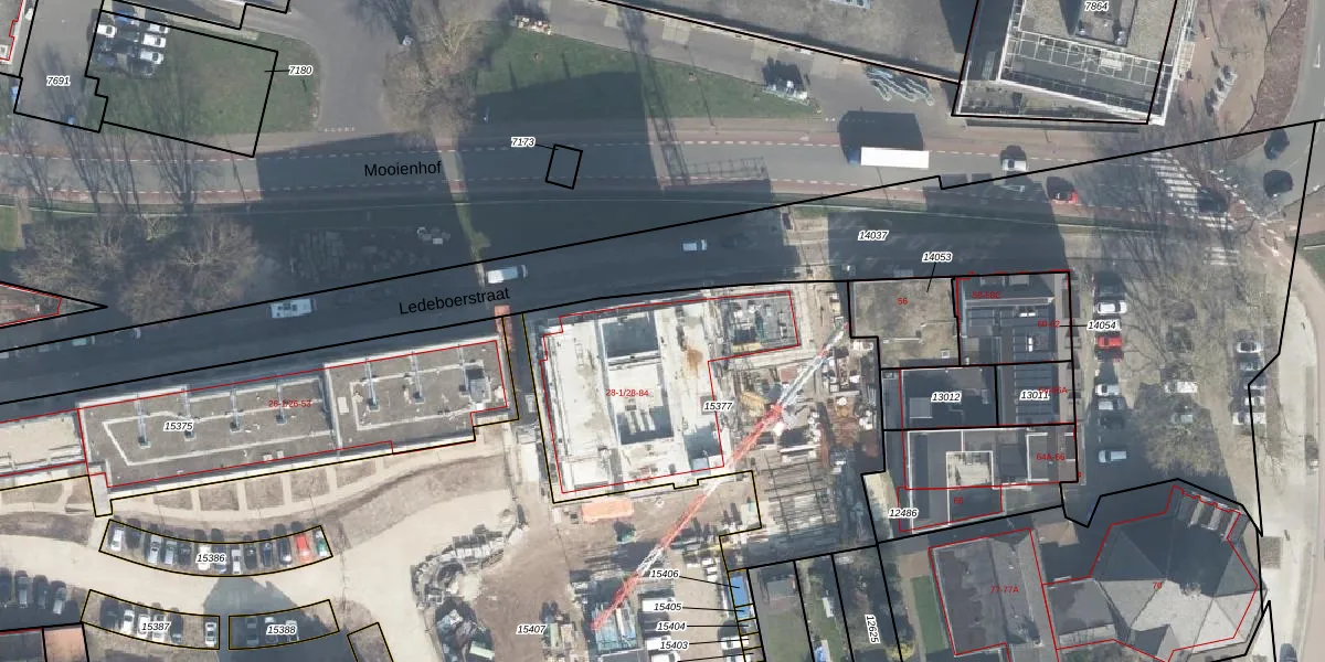 Het perceel waarop Ledeboerstraat 28-33 staat heeft een oppervlakte van 1729 m². Dit is een zeer groot perceel. De perceeloppervlakte wordt geregistreerd door het Kadaster. Gedetailleerde informatie over de maten van dit perceel kunt u vinden in het rapport Kadastrale kaart met maatvoering van Ledeboerstraat 28-33.