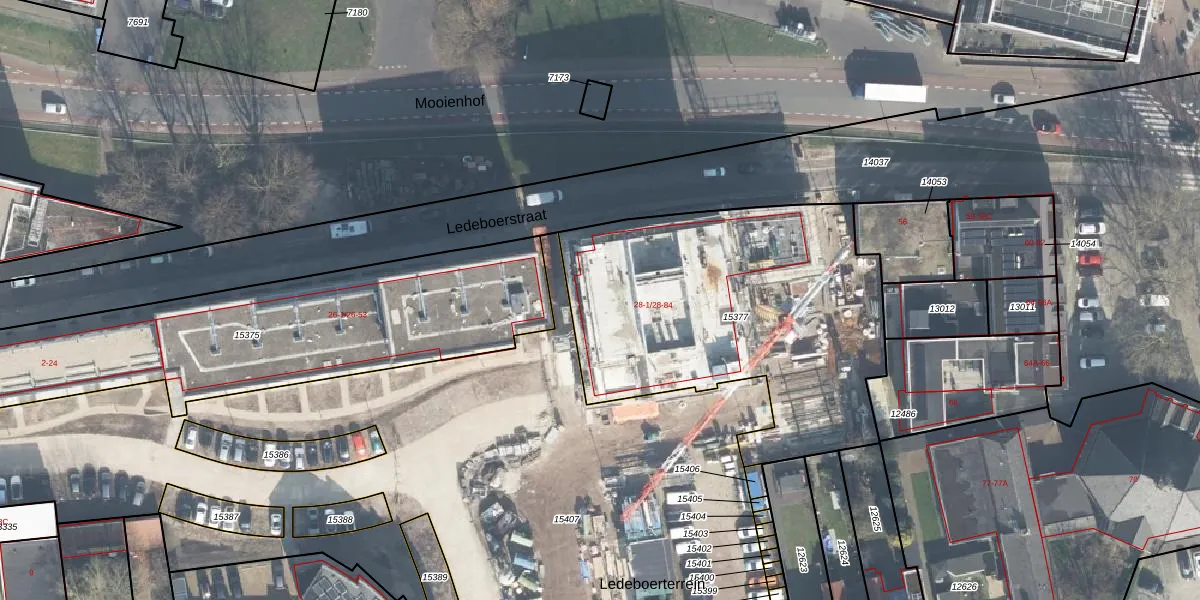 Het perceel waarop Ledeboerstraat 28-71 staat heeft een oppervlakte van 1729 m². Dit is een zeer groot perceel. De perceeloppervlakte wordt geregistreerd door het Kadaster. Gedetailleerde informatie over de maten van dit perceel kunt u vinden in het rapport Kadastrale kaart met maatvoering van Ledeboerstraat 28-71.