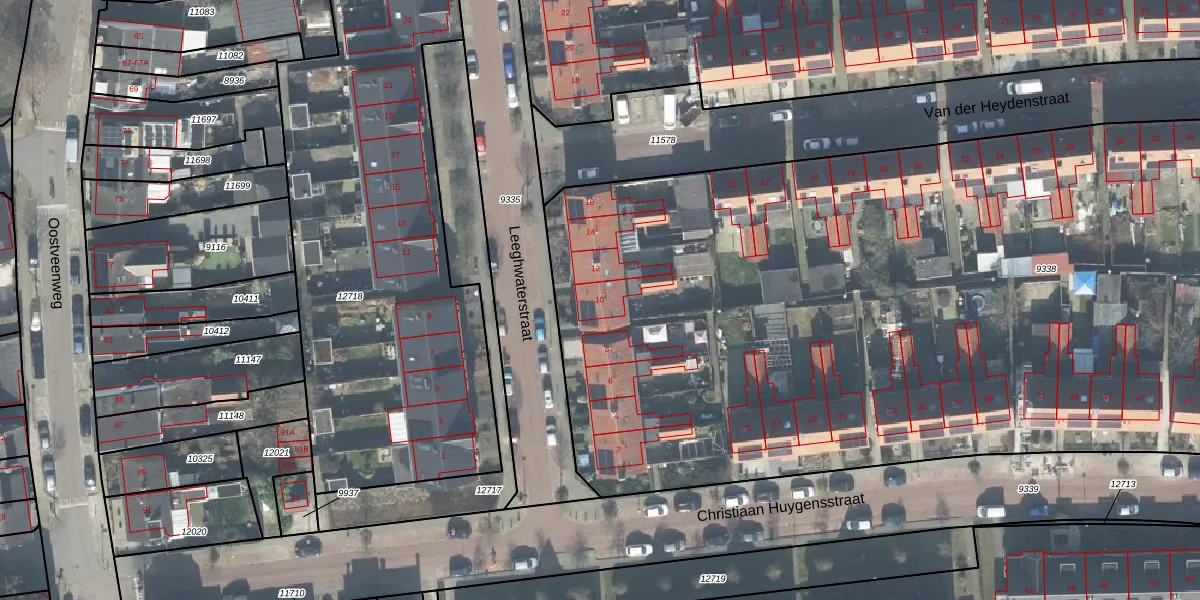 Het perceel waarop Leeghwaterstraat 10 staat heeft een oppervlakte van 9019 m². Dit is een zeer groot perceel. De perceeloppervlakte wordt geregistreerd door het Kadaster. Gedetailleerde informatie over de maten van dit perceel kunt u vinden in het rapport Kadastrale kaart met maatvoering van Leeghwaterstraat 10.