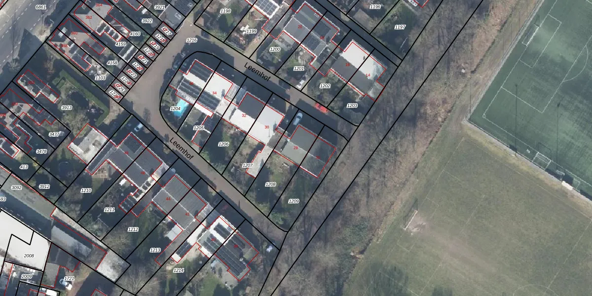 Het perceel waarop Leemhof 28 staat heeft een oppervlakte van 370 m². Dit is een groot perceel. De perceeloppervlakte wordt geregistreerd door het Kadaster. Gedetailleerde informatie over de maten van dit perceel kunt u vinden in het rapport Kadastrale kaart met maatvoering van Leemhof 28.