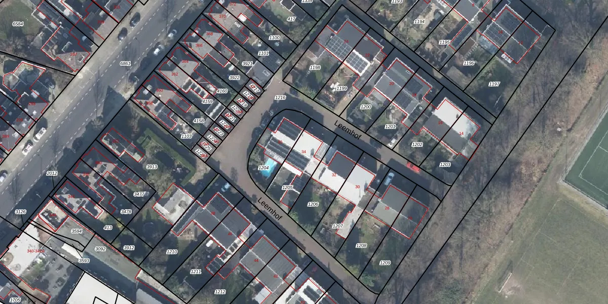 Het perceel waarop Leemhof 34 staat heeft een oppervlakte van 306 m². Dit is een groot perceel. De perceeloppervlakte wordt geregistreerd door het Kadaster. Gedetailleerde informatie over de maten van dit perceel kunt u vinden in het rapport Kadastrale kaart met maatvoering van Leemhof 34.
