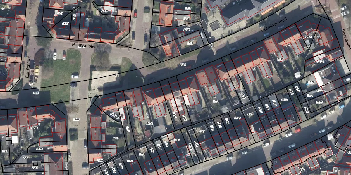 Gebruik de zoekbalk of klik op een perceel voor informatie over de adressen binnen dit perceel.