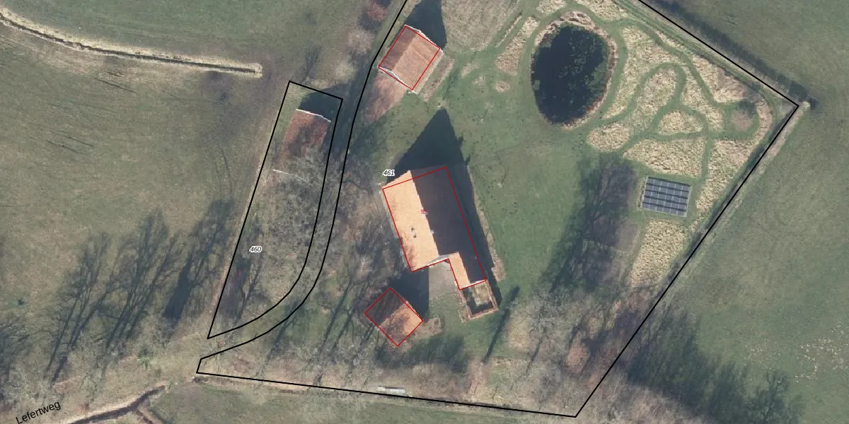 Het perceel waarop Lefertweg 55 staat heeft een oppervlakte van 9015 m². Dit is een zeer groot perceel. De perceeloppervlakte wordt geregistreerd door het Kadaster. Gedetailleerde informatie over de maten van dit perceel kunt u vinden in het rapport Kadastrale kaart met maatvoering van Lefertweg 55.
