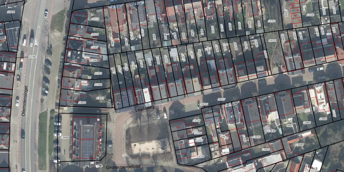 Gebruik de zoekbalk of klik op een perceel voor informatie over de adressen binnen dit perceel.