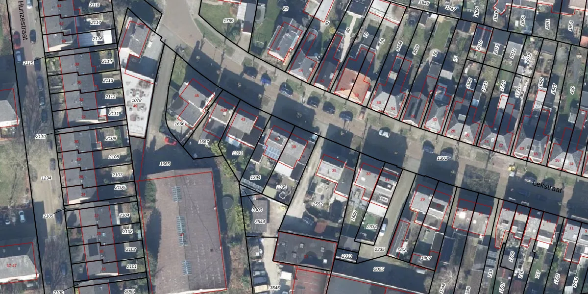 Gebruik de zoekbalk of klik op een perceel voor informatie over de adressen binnen dit perceel.