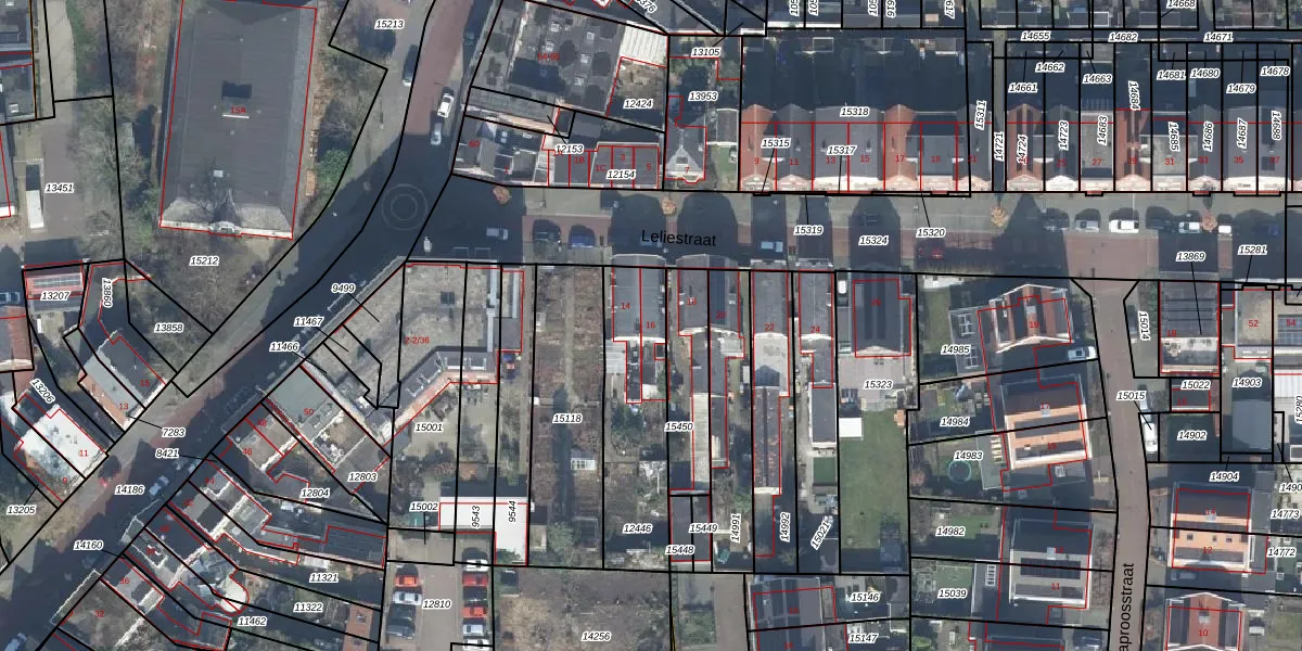 Het perceel waarop Leliestraat 16 staat heeft een oppervlakte van 453 m². Dit is een groot perceel. De perceeloppervlakte wordt geregistreerd door het Kadaster. Gedetailleerde informatie over de maten van dit perceel kunt u vinden in het rapport Kadastrale kaart met maatvoering van Leliestraat 16.