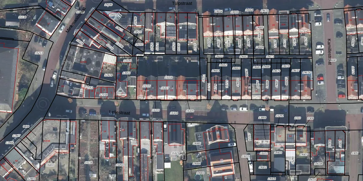 Het perceel waarop Leliestraat 17 staat heeft een oppervlakte van 869 m². Dit is een groot perceel. De perceeloppervlakte wordt geregistreerd door het Kadaster. Gedetailleerde informatie over de maten van dit perceel kunt u vinden in het rapport Kadastrale kaart met maatvoering van Leliestraat 17.