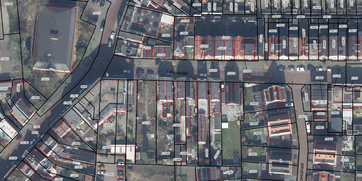 Gebruik de zoekbalk of klik op een perceel voor informatie over de adressen binnen dit perceel.