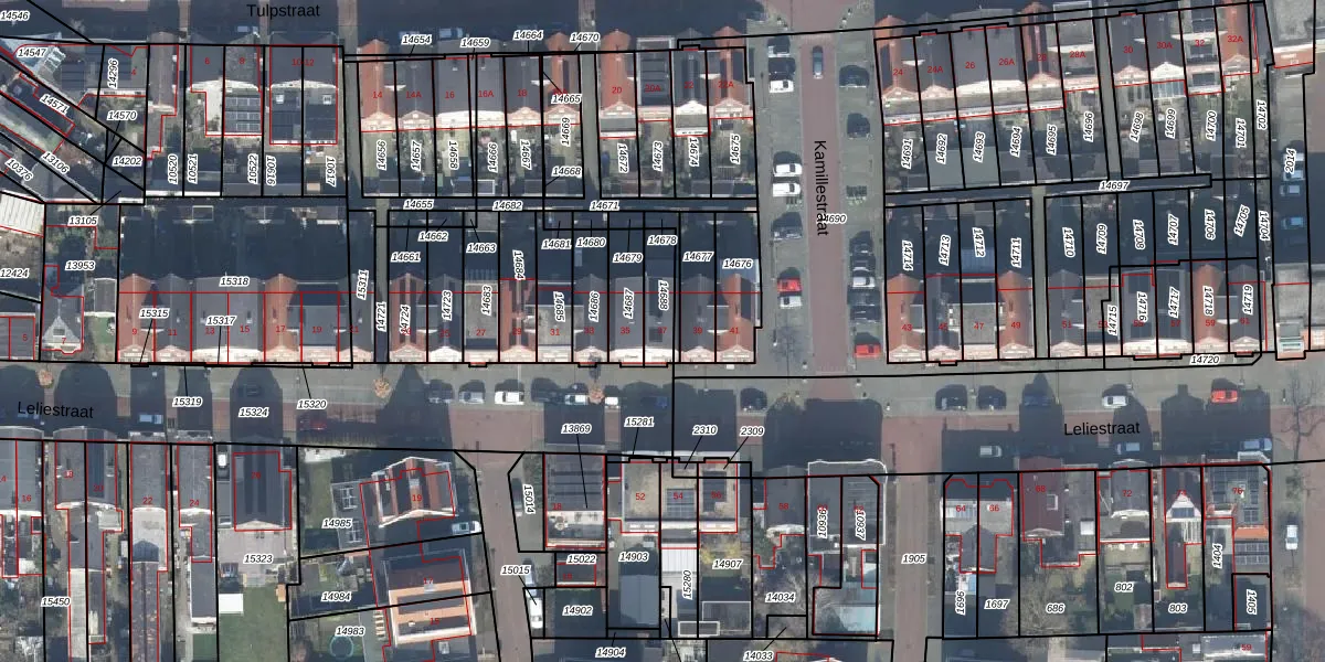 Het perceel waarop Leliestraat 37 staat heeft een oppervlakte van 95 m². Dit is een klein perceel. De perceeloppervlakte wordt geregistreerd door het Kadaster. Gedetailleerde informatie over de maten van dit perceel kunt u vinden in het rapport Kadastrale kaart met maatvoering van Leliestraat 37.