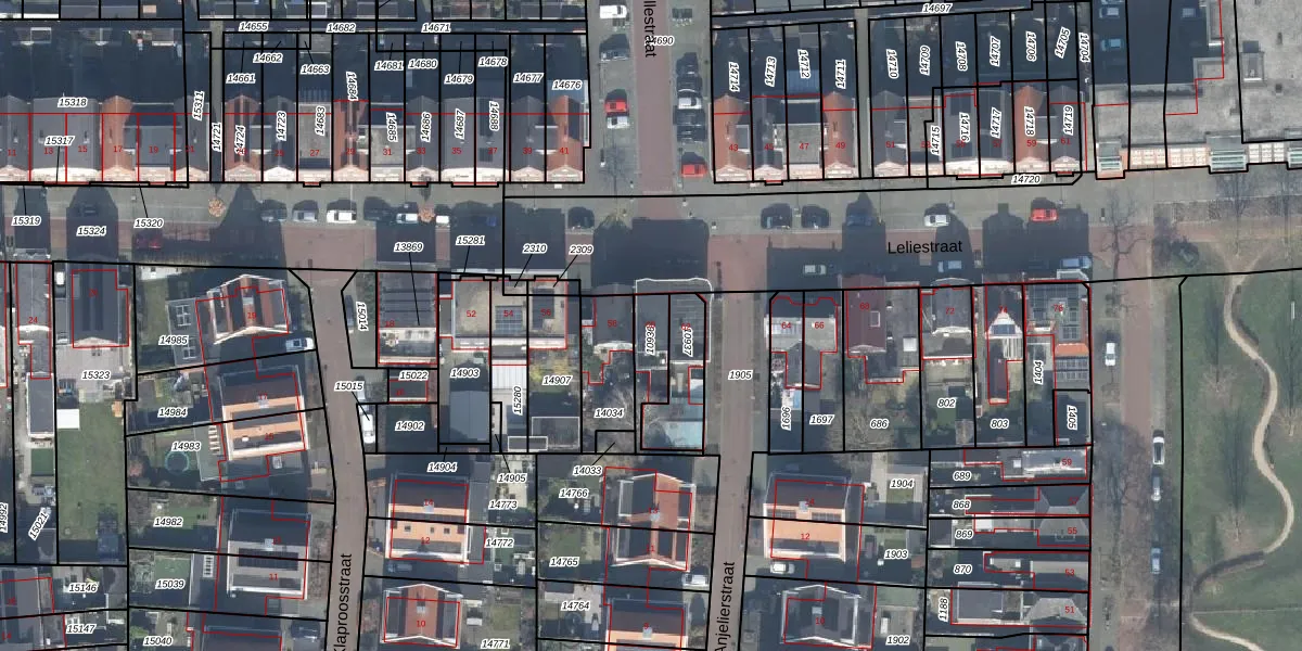 Gebruik de zoekbalk of klik op een perceel voor informatie over de adressen binnen dit perceel.