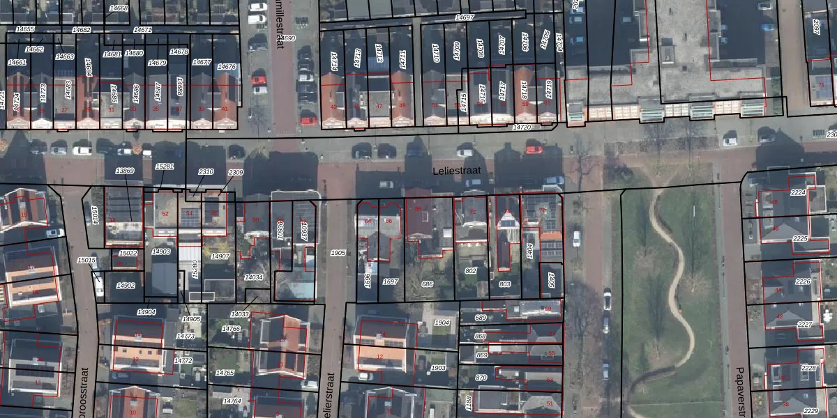 Gebruik de zoekbalk of klik op een perceel voor informatie over de adressen binnen dit perceel.
