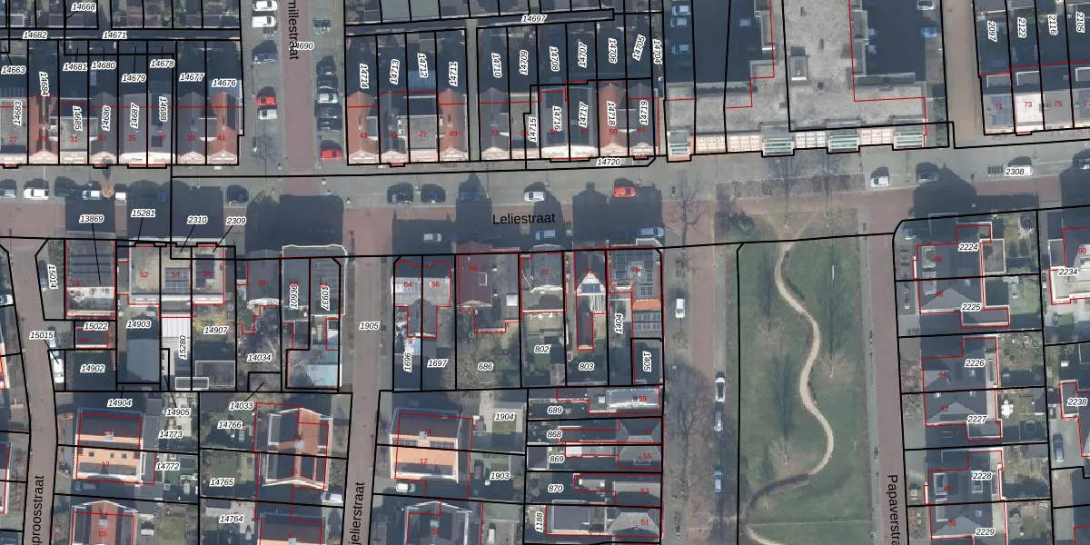 Het perceel waarop Leliestraat 72 staat heeft een oppervlakte van 202 m². Dit is een middelgroot perceel. De perceeloppervlakte wordt geregistreerd door het Kadaster. Gedetailleerde informatie over de maten van dit perceel kunt u vinden in het rapport Kadastrale kaart met maatvoering van Leliestraat 72.