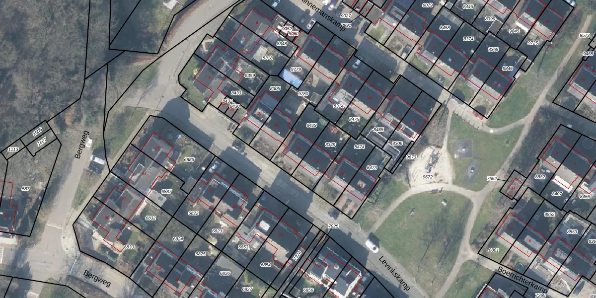 Gebruik de zoekbalk of klik op een perceel voor informatie over de adressen binnen dit perceel.