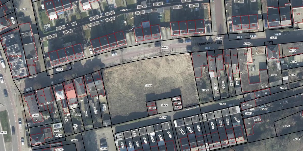 Het perceel waarop Lipperkerkstraat 214-A staat heeft een oppervlakte van 2021 m². Dit is een zeer groot perceel. De perceeloppervlakte wordt geregistreerd door het Kadaster. Gedetailleerde informatie over de maten van dit perceel kunt u vinden in het rapport Kadastrale kaart met maatvoering van Lipperkerkstraat 214-A.
