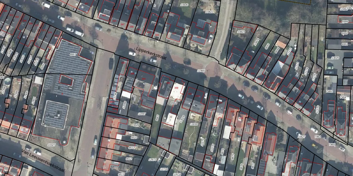 Het perceel waarop Lipperkerkstraat 398 staat heeft een oppervlakte van 317 m². Dit is een groot perceel. De perceeloppervlakte wordt geregistreerd door het Kadaster. Gedetailleerde informatie over de maten van dit perceel kunt u vinden in het rapport Kadastrale kaart met maatvoering van Lipperkerkstraat 398.