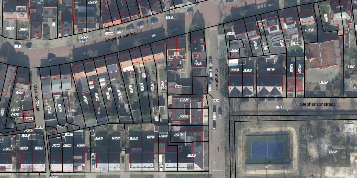 Het perceel waarop Lipperkerkstraat 472-5 staat heeft een oppervlakte van 465 m². Dit is een groot perceel. De perceeloppervlakte wordt geregistreerd door het Kadaster. Gedetailleerde informatie over de maten van dit perceel kunt u vinden in het rapport Kadastrale kaart met maatvoering van Lipperkerkstraat 472-5.