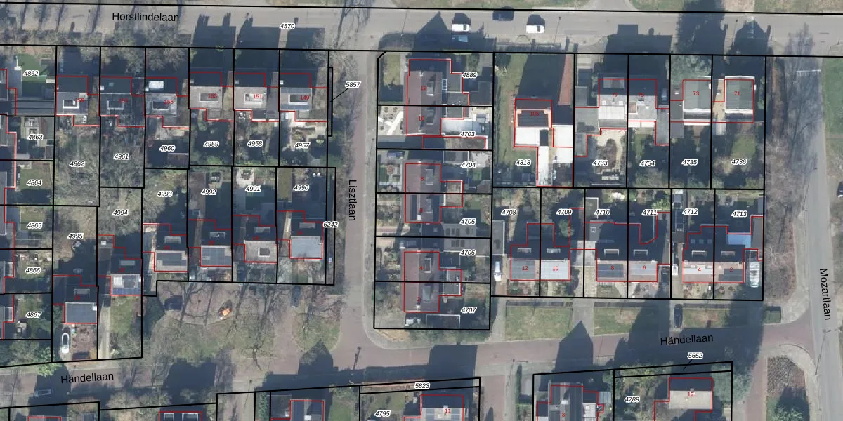 Gebruik de zoekbalk of klik op een perceel voor informatie over de adressen binnen dit perceel.