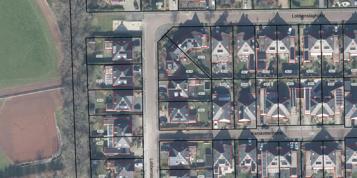 Het perceel waarop Lobbenslaghorst 10 staat heeft een oppervlakte van 361 m². Dit is een groot perceel. De perceeloppervlakte wordt geregistreerd door het Kadaster. Gedetailleerde informatie over de maten van dit perceel kunt u vinden in het rapport Kadastrale kaart met maatvoering van Lobbenslaghorst 10.
