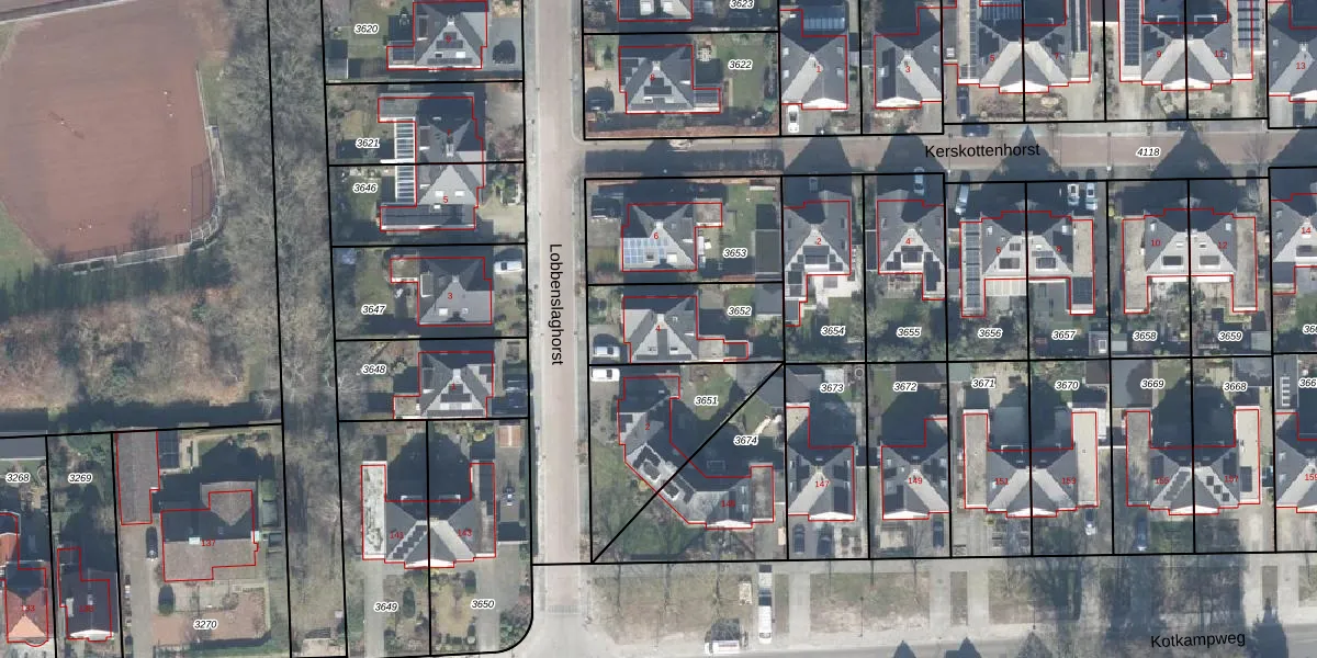 Het perceel waarop Lobbenslaghorst 4 staat heeft een oppervlakte van 363 m². Dit is een groot perceel. De perceeloppervlakte wordt geregistreerd door het Kadaster. Gedetailleerde informatie over de maten van dit perceel kunt u vinden in het rapport Kadastrale kaart met maatvoering van Lobbenslaghorst 4.