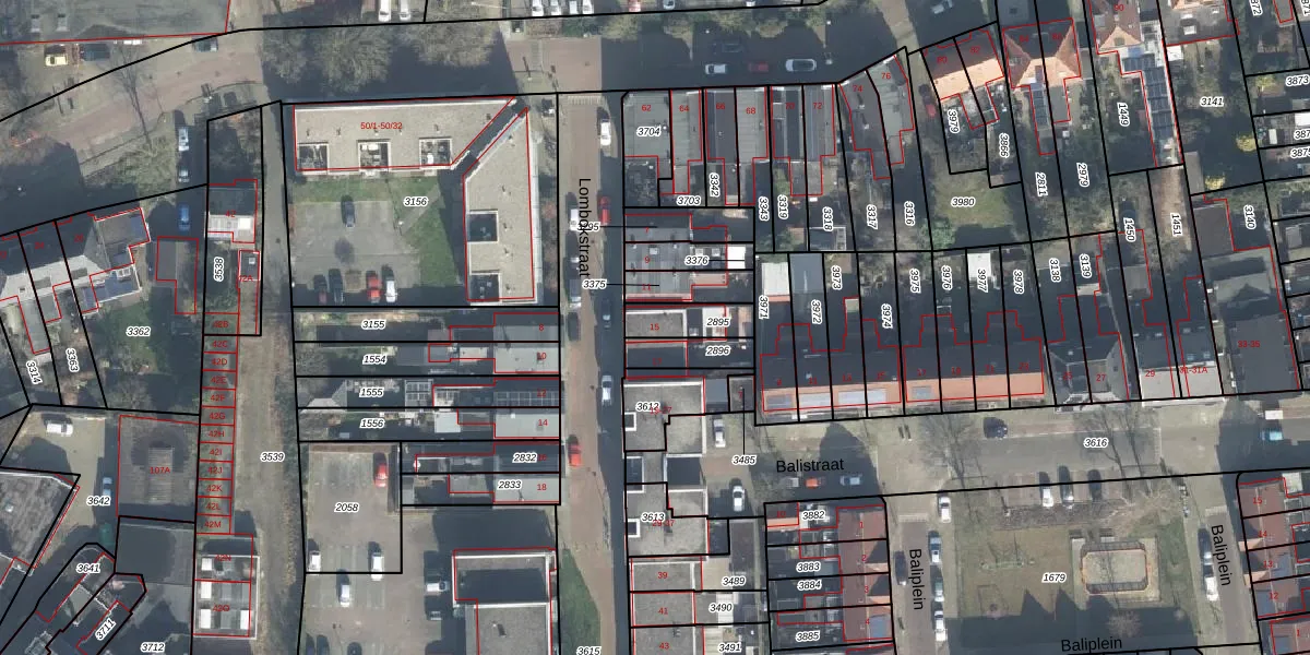 Gebruik de zoekbalk of klik op een perceel voor informatie over de adressen binnen dit perceel.